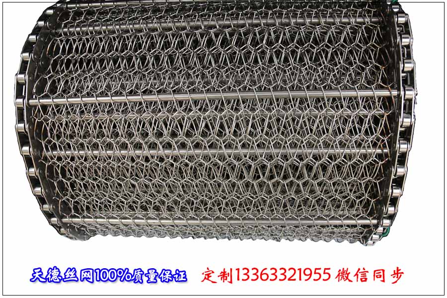 螺旋式網(wǎng)帶:是由不銹鋼棒條,不銹鋼螺旋網(wǎng)條,U型鏈條以及不銹鋼小帽組合而成。需人焊邊。常用的規(guī)格主要有300mm--1000mm寬,但也可根據(jù)客戶的需求進行制造。一般用于食品速凍行業(yè)。