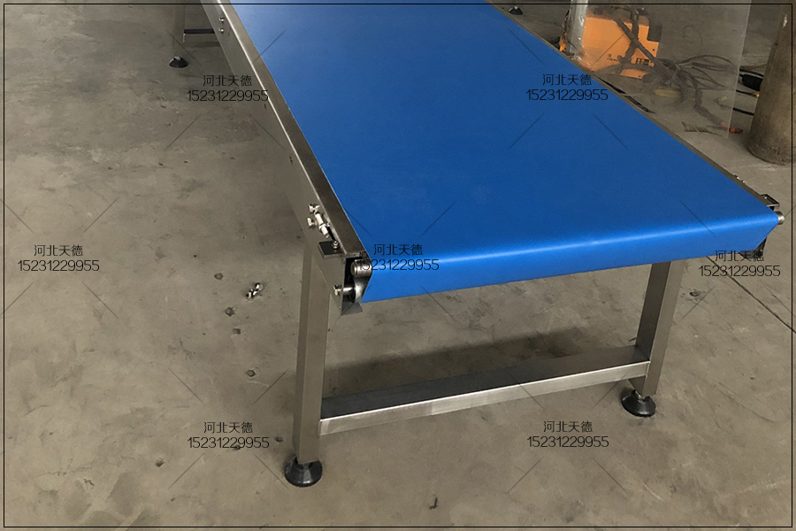 頭部安裝驅(qū)動(dòng)滾筒,尾部要安裝被動(dòng)滾筒。驅(qū)動(dòng)滾筒與被動(dòng)滾筒的軸中 央線應(yīng)與輸送機(jī)機(jī)架的中 央線垂直,安裝時(shí)把頭部滾筒與尾部滾筒的軸 承座固定孔相對(duì)應(yīng)的機(jī)架上固定孑L做成長(zhǎng)型跑道孔,安裝完成后調(diào)整。皮帶兩側(cè)的松緊度不一致,導(dǎo)致輸送機(jī)輸送帶向緊的一側(cè)移動(dòng)跑偏。這時(shí)候 可以通過(guò)調(diào)整頭尾部滾筒的軸承座的前后位置來(lái)處理。 輸送帶的接口 ,輸送帶的接口要平直。輸送帶的接口方法有膠粘法與釘皮帶扣法。要保證皮帶食品輸送機(jī)輸送帶接口兩端要整齊,切口線和皮帶中 央線要垂直 。