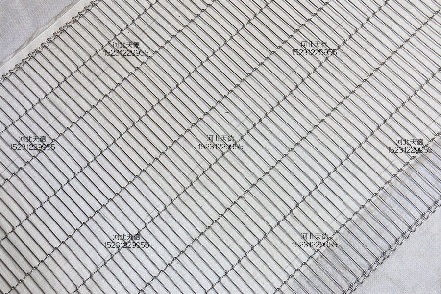 乙字輸送帶多用于食品的輸送,常見(jiàn)輸送巧克力、薄脆餅干、蛋糕加工線、油炸機(jī)設(shè)備、烘干設(shè)備等等,但是乙型輸送帶也可以用在裝飾行業(yè)中使用,可以用在室內(nèi)的裝修,酒店裝飾,書(shū)店裝飾等等。下面天德介紹一款可以做金屬網(wǎng)帶使用也可以做裝飾網(wǎng)使用的乙字網(wǎng)。