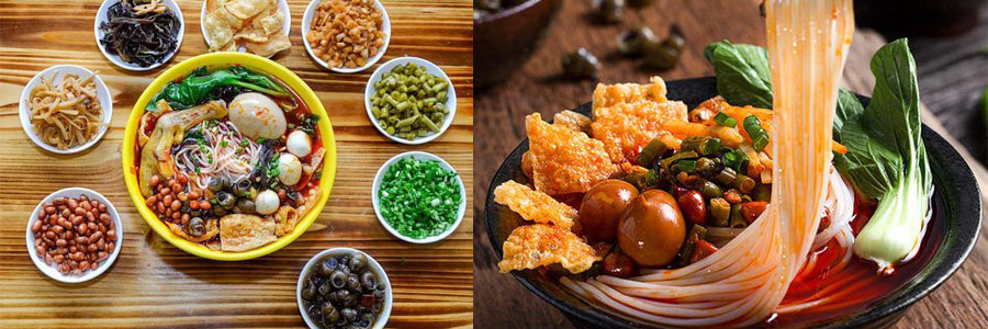 螺螄粉具有辣、酸、燙的風(fēng)味,在柳州是有名的風(fēng)味小吃,是由柳州的軟滑爽口的米粉。加上酸筍、花生、木耳、油炸腐竹、黃花菜、鮮美的青菜等配料和煮爛螺螄粉的湯水調(diào)和成的,有著鮮美的味道。