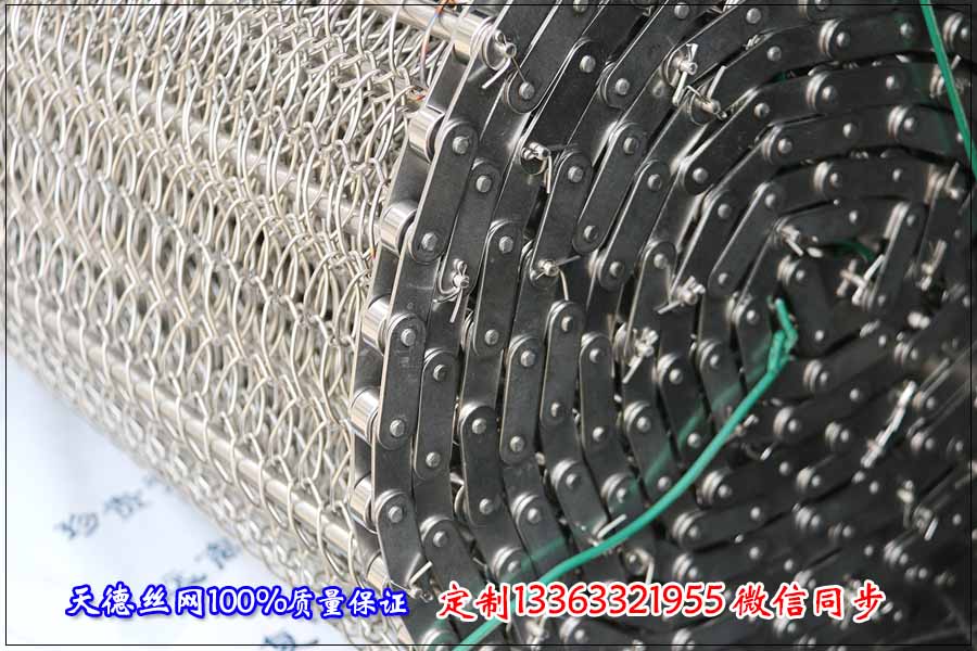 鏈條網帶簡介:鏈條式網帶是由鏈條驅動的輸送網帶,一般都由鏈條帶動小軸再帶動網帶運行。 網帶都采用軋牙串條、左右網條二根串,并大小網條連接而成,大網條內穿進小軸,小軸二端穿入鏈條孔,從而達到鏈條驅動輸送網帶。鏈條網傳動平穩(wěn)、傳動力矩小。