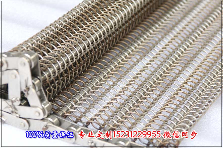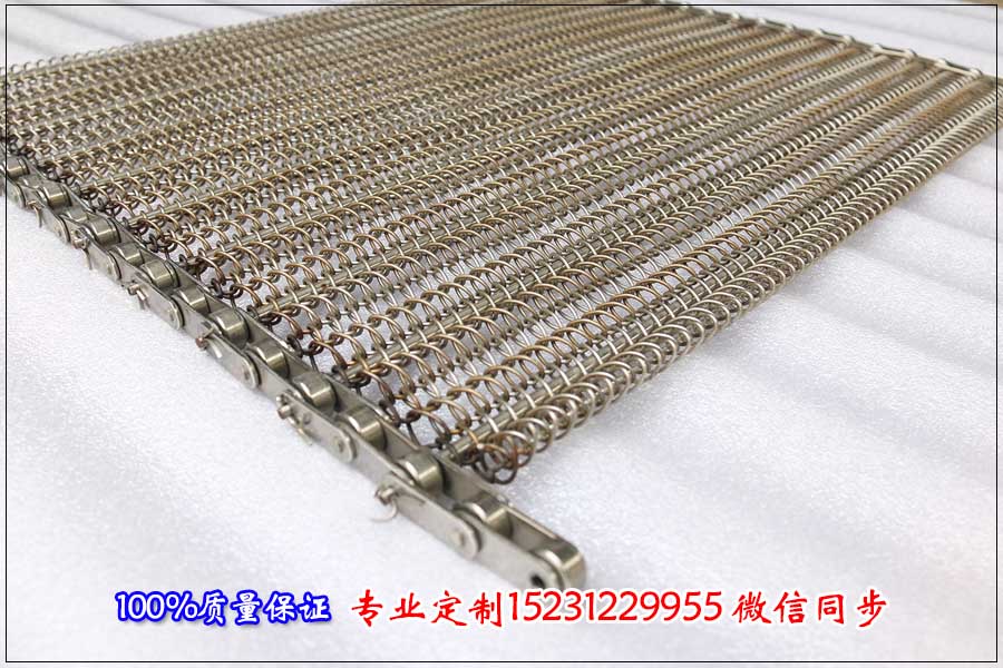 單旋金屬網(wǎng)帶:是用軋花穿條連接兩個不同方向的螺旋絲,小網(wǎng)孔大小為3-30毫米,金屬網(wǎng)帶的承載物品的能力通過定制不同不銹鋼絲的直徑粗細與支撐穿桿的直徑與桿間距來定制的,單旋金屬輸送網(wǎng)帶可適用于大多數(shù)行業(yè)輸送,使用材質(zhì)可根據(jù)物料特性、使用環(huán)境選擇和空氣的情況來確定的。
