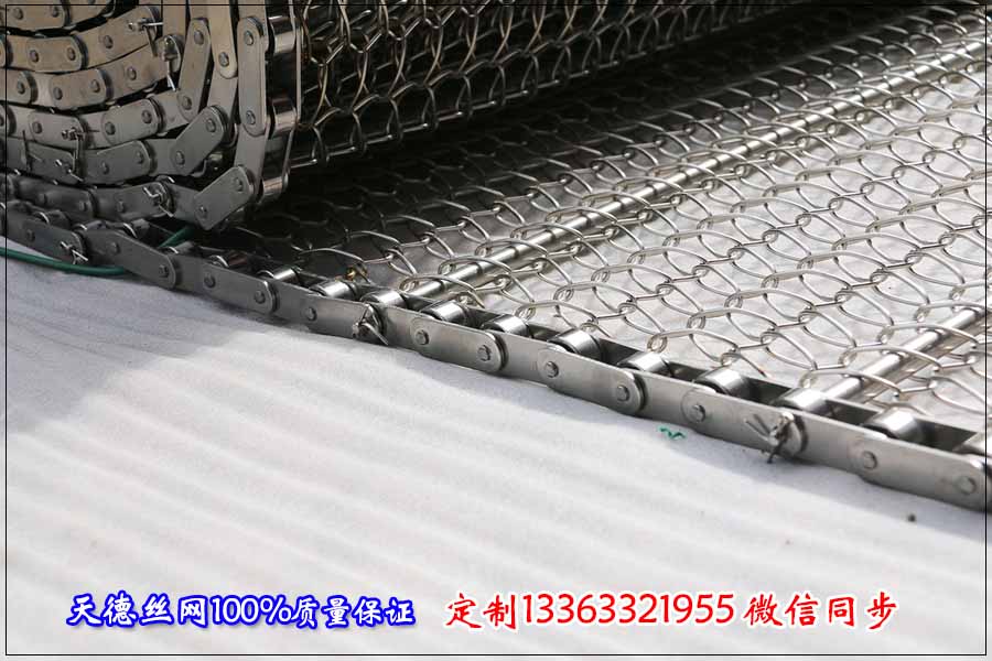 在食品、肉類行業(yè)中我們采用什么結(jié)構(gòu)形式的不銹鋼網(wǎng)帶比較多呢?今天我們?yōu)榇蠹襾矸治鲆幌拢? 不銹鋼網(wǎng)帶的結(jié)構(gòu)形式有鏈條輸送帶、鏈板輸送帶、鏈桿輸送帶、人字輸送帶、螺旋輸送帶、雙旋輸送帶、乙型輸送帶、長(zhǎng)城輸送帶等等,在食品行業(yè)中、肉類、蔬菜行業(yè)中通常采用鏈條輸送帶的比較多,雞肉速凍機(jī)不銹鋼網(wǎng)帶也可以采用鏈條輸送帶來傳送。這種輸送帶成本相對(duì)較低,透氣性高,采用齒輪鏈條傳送,在整個(gè)運(yùn)輸過程中不會(huì)出現(xiàn)輸送帶跑偏的現(xiàn)象。在選擇定制鏈條輸送帶的規(guī)格時(shí)候,要根據(jù)我們輸送雞肉的載重量和雞肉塊的大小來決定。