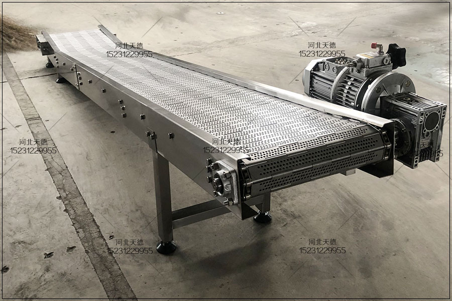 鏈板輸送機(jī)歡迎來電河北天德速凍蔬菜流水線鏈板輸送機(jī):15231229955 網(wǎng)址:http://zg84.cn/