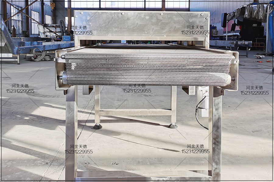 脆脆角流水線網(wǎng)帶式烘干機(jī)是利用不銹鋼鏈條網(wǎng)帶作為運(yùn)載物料進(jìn)行連續(xù)烘干的干燥設(shè)備。網(wǎng)帶式烘干機(jī)將所要處理的物料通過(guò)適當(dāng)?shù)匿伭蠙C(jī)構(gòu),如星型布料器、擺動(dòng)帶、粉碎機(jī)或造粒機(jī),分布在輸送帶上,輸送帶通過(guò)一個(gè)或幾個(gè)加熱單元組成的通道,每個(gè)加熱單元均配有空氣加熱和循環(huán)系統(tǒng),每一個(gè)通道有一個(gè)或幾個(gè)排濕系統(tǒng),在輸送帶通過(guò)時(shí),熱空氣從上往下或從下往上通過(guò)輸送帶上的物料,從而使物料能均勻干燥。網(wǎng)帶式烘干機(jī)是利用鋼網(wǎng)作為傳輸帶運(yùn)載物料進(jìn)行連續(xù)烘干的干燥設(shè)備由于傳輸帶是網(wǎng)狀,所以對(duì)烘干規(guī)則或不規(guī)則各種塊狀物(如:煤塊、各種礦粉成型快、食品、蔬菜等)適宜。本機(jī)可以和其他設(shè)備配套使用。也可以單獨(dú)使用。該設(shè)備可廣泛用于冶金、建材、陶瓷、化肥、化工等行業(yè),并且網(wǎng)帶式烘干機(jī)也是食品和蔬菜進(jìn)行干燥加工的理想設(shè)備。