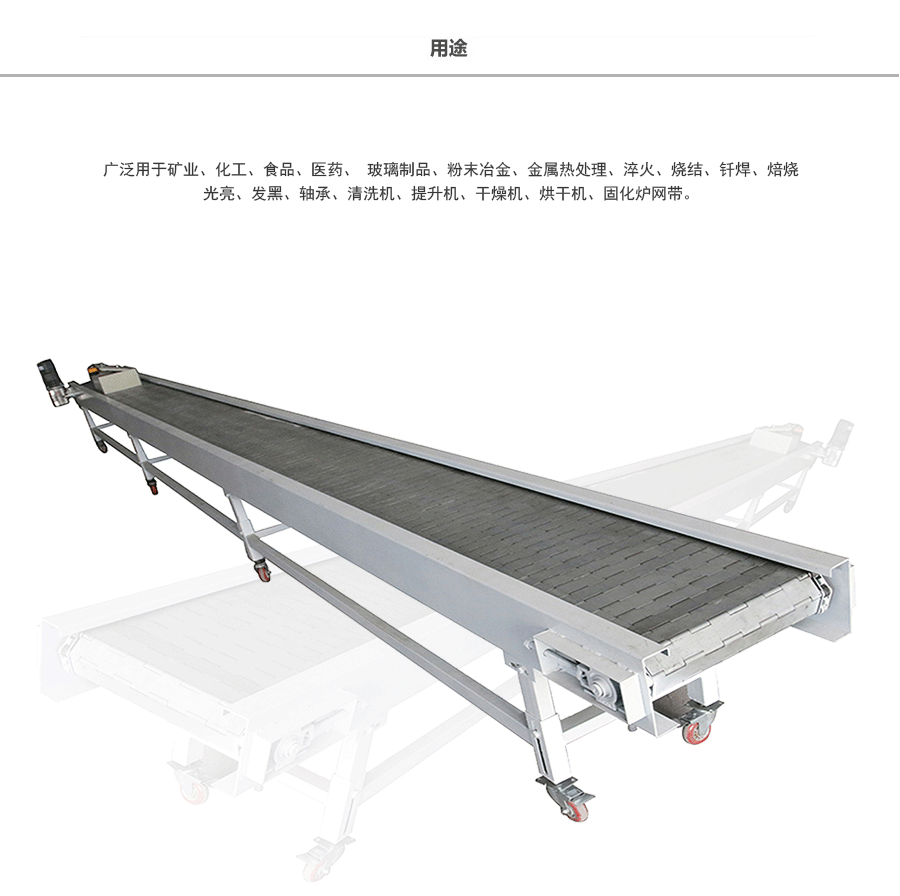 鏈板輸送帶應用:鏈板式網(wǎng)帶廣泛用于玻璃制品行業(yè)的退火爐鏈板、烤花爐鏈板等。食品加工行業(yè)、脫水蔬菜、速凍食品單凍機前處理鏈板、鏈網(wǎng)。粉末冶金、金屬熱處理、淬火、燒結、釬焊、焙燒、光亮、發(fā)黑、軸承、滲碳高溫爐鏈板、擋板式鏈板、涂裝烘干線輸送鏈板、泡沫鎳還原生產線鏈板,清洗機、提升機、干燥機、烘干機、固化爐鏈板。各輸送工藝鏈網(wǎng)、鏈板、速凍、烘烤機械的平面輸送、螺旋輸送、食品機械的清洗,殺 菌、烘干、冷 卻、蒸煮等玻璃機械的退火、烤花、輸瓶等。