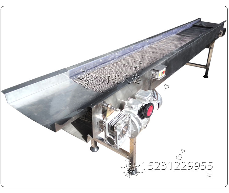 組成結構:由鏈輪、鏈條、網帶、驅動設備組成,可根據(jù)輸送物料的種類、體積、重量來選用不同形式的網帶。