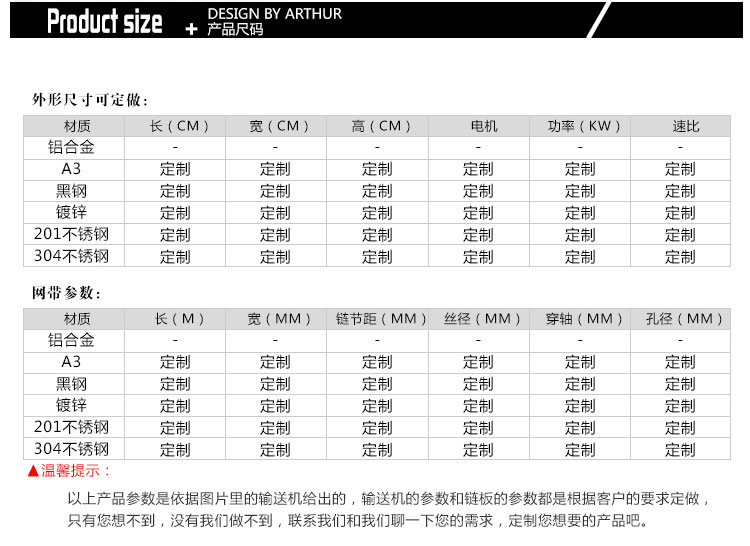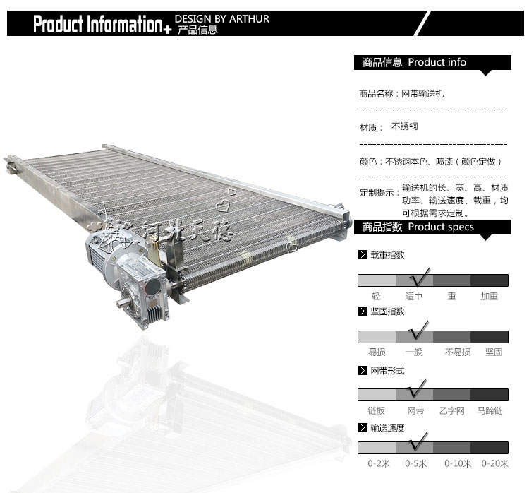 可根據(jù)客戶需求進行設(shè)計私人訂制,如果您需要更詳細的網(wǎng)帶輸送機/食品網(wǎng)帶輸送機/網(wǎng)帶輸送線/網(wǎng)帶流水線產(chǎn)品信息,解決方案和報價,請聯(lián)系客服,我們會為您提供熱情的服務(wù)。
