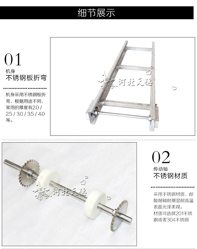 1.網(wǎng)帶輸送機以不銹鋼網(wǎng)帶為輸送介質(zhì),其特性堅固,耐磨、不拍尖銳的物品劃傷,輸送豬肉、雞鴨、魚蝦等干凈衛(wèi)生;
