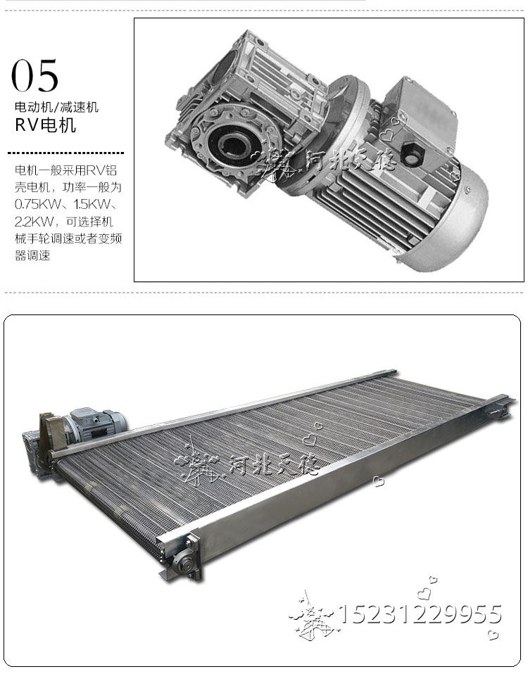 4.采用不同材質(zhì)的網(wǎng)帶可以起到不同的輸送作用并且滿足不同環(huán)境的需要,能夠滿足環(huán)境溫度零下-30度至120攝氏度之間的輸送要求。