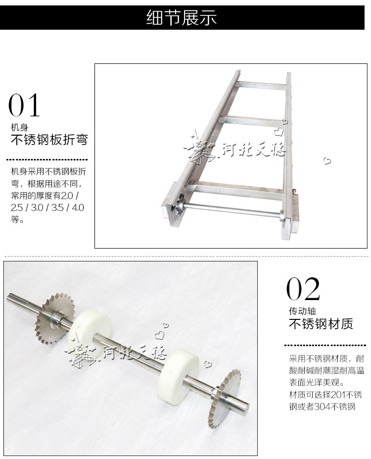 不同輸送環(huán)境所使用的鏈板輸送機(jī)型號(hào)不一樣,不同型號(hào)鏈板輸送機(jī)功能和成本也不一樣,所以鏈板輸送機(jī)型號(hào)的選擇是一個(gè)很重要的環(huán)節(jié)。首先根據(jù)輸送物料特性來確定鏈板輸送機(jī)材質(zhì),食品輸送、高溫輸送、腐蝕環(huán)境送要選用不銹鋼材質(zhì),自然環(huán)境輸送用碳鋼或鍍鋅鏈板都可。然后根據(jù)輸送物料形狀和單位面積重量來選擇鏈板型號(hào)、鏈條型號(hào),常規(guī)來講大體積、大重量用折彎型鏈板輸送機(jī),密度小的散碎物料用合頁(yè)型鏈板輸送機(jī),輕型高速輸送那就選擇平頂鏈板輸送機(jī)。 在金屬件輸送和廢料輸送中經(jīng)常用到鏈板輸送機(jī),鏈板輸送機(jī)的型號(hào)和參數(shù)是很多的,用戶在選擇時(shí)要根據(jù)自己的產(chǎn)品來選擇。鏈板輸送機(jī)常規(guī)型號(hào)有平頂鏈板輸送機(jī)、折彎鏈板輸送機(jī)、合頁(yè)鏈板輸送機(jī),其中以合頁(yè)鏈板輸送機(jī)用的廣泛。