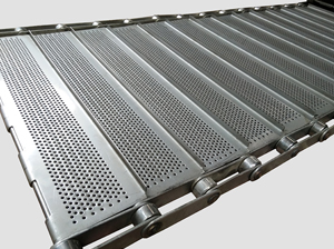 帶擋板的鏈條網(wǎng)帶鏈條的內(nèi)側(cè)加裝的擋板,擋板可以是單獨(dú)加裝也可以是加高鏈條片,加裝側(cè)面擋板以后可以有效的防止在輸送物料的過程中物料側(cè)漏,因?yàn)閾醢搴洼斔蛶峭竭\(yùn)轉(zhuǎn)所以加裝擋板以后還可以防止在輸送過程中物料可機(jī)身發(fā)生接觸和摩擦,避免了物料的損壞和網(wǎng)帶的卡頓。